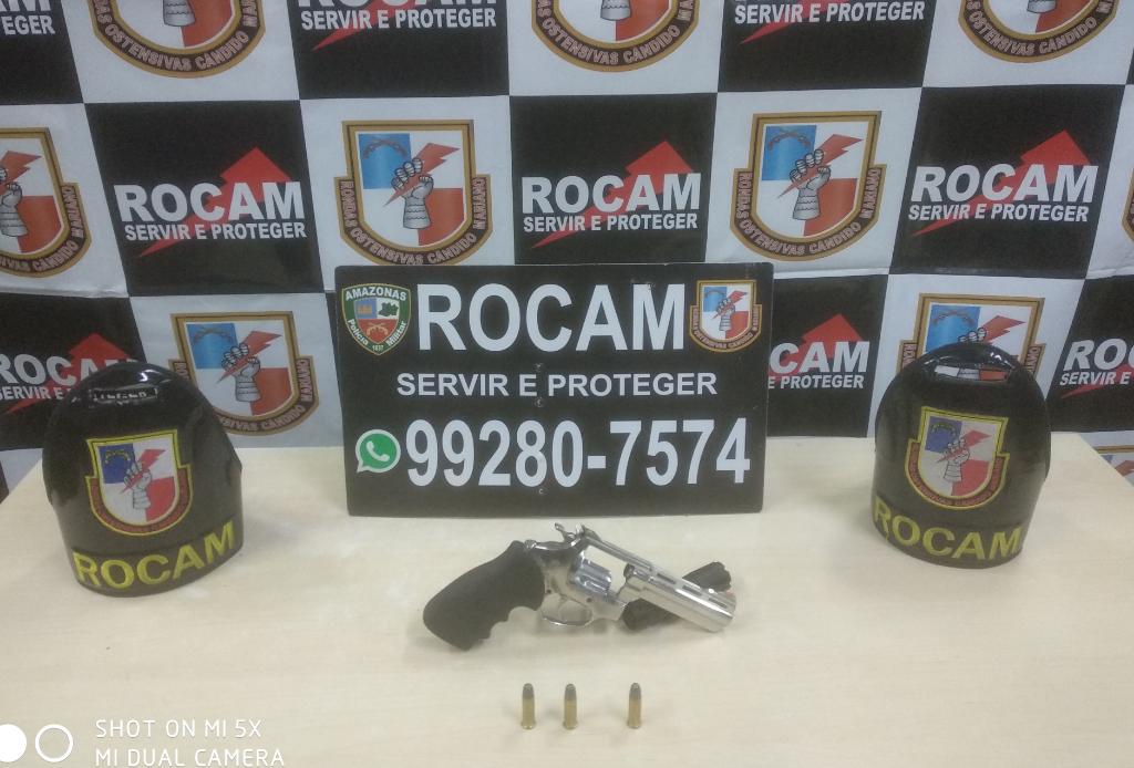 Policiais da Rocam detêm homem com revólver no bairro Glória