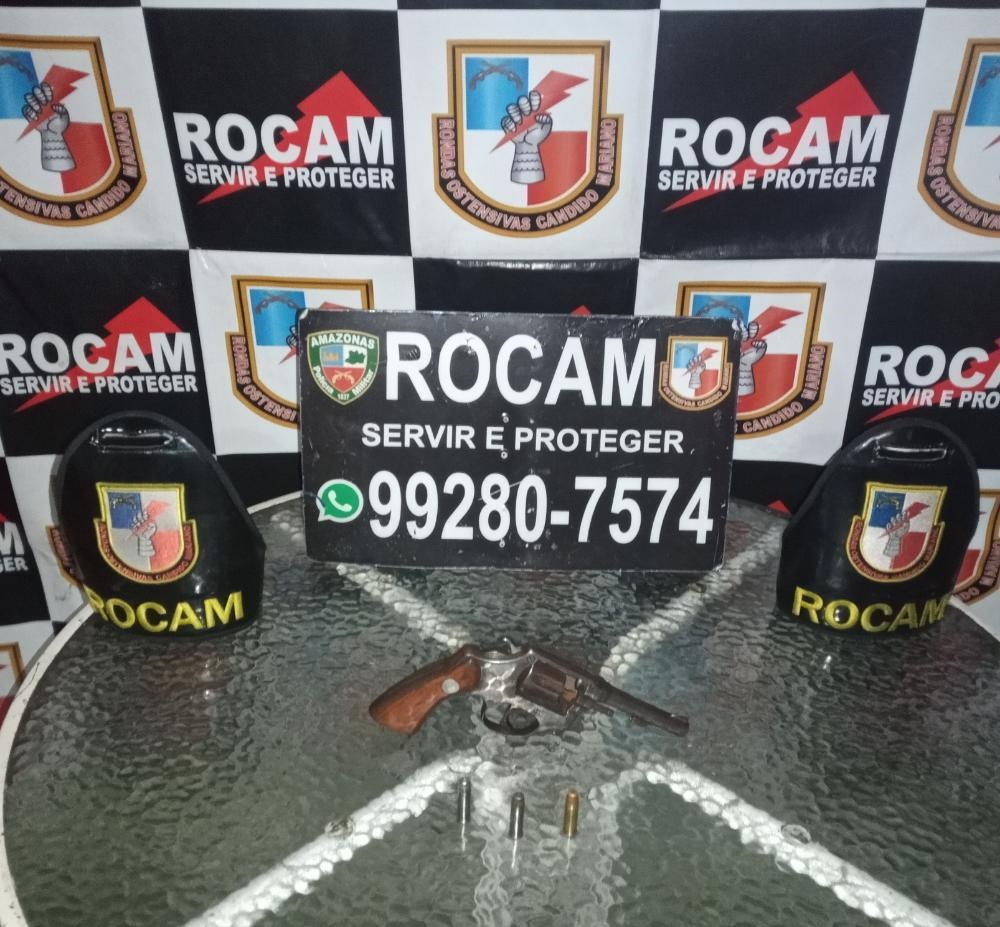 As equipes policiais da Rocam, durante ação operacional no referido município, por volta de 20h30, receberam denúncia anônima de moradores de um conjunto habitacional de que um indivíduo guardaria arma de fogo em sua residência. No local, os militares localizaram o suspeito em posse ilegal de um revólver calibre 38 com numeração raspada e três munições de mesmo calibre.