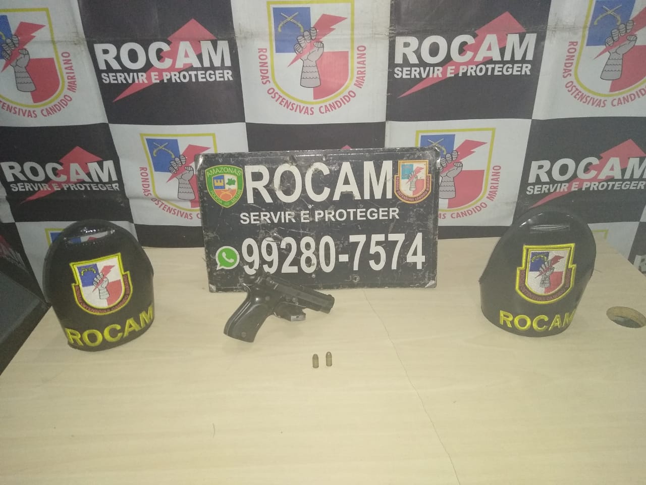 Uma equipe das Rondas Ostensivas Cândido Mariano (Rocam) deteve, na tarde da quinta-feira (13/02), um homem por porte ilegal de arma de fogo, no bairro Santa Etelvina, zona norte de Manaus. Com o suspeito foi encontrada uma arma de fogo tipo pistola de calibre 7.65, com duas munições de calibre 3.80 intactas.
