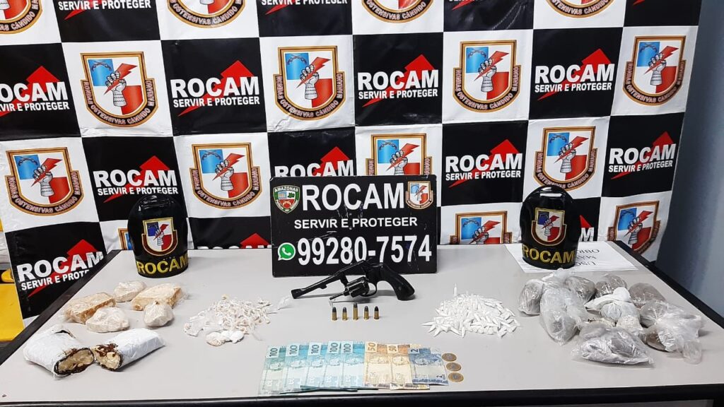 Também foram encontradas seis porções grandes de substância com características de entorpecente tipo oxi (1,3 kg); 11 porções grandes de substância com características de entorpecente do tipo maconha skunk (750 gramas); 136 pinos com aspecto de cocaína; 82 porções com aspecto de oxi; uma porção pequena da mesma substância e uma quantia de R$ 605. Em face do flagrante, o homem foi apresentado ao 6º Distrito Integrado de Polícia (DIP) para os procedimentos legais. Ele já tem passagem por roubo e porte ilegal de arma de fogo.