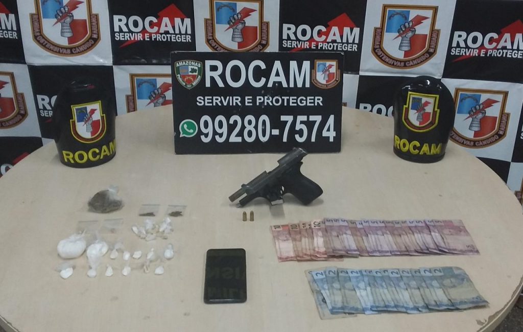 Policiais militares do 2º Batalhão de Policiamento de Choque (2º BPChoque) das Rondas Ostensivas Cândido Mariano (Rocam) detiveram, no início da madrugada desta quarta-feira (16/09), um homem de 24 anos por tráfico de entorpecentes e porte ilegal de arma de fogo. O fato ocorreu no bairro Mauazinho, zona leste de Manaus