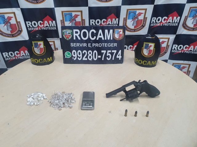 Rocam detém jovem de 18 anos em posse de arma de fogo e drogas