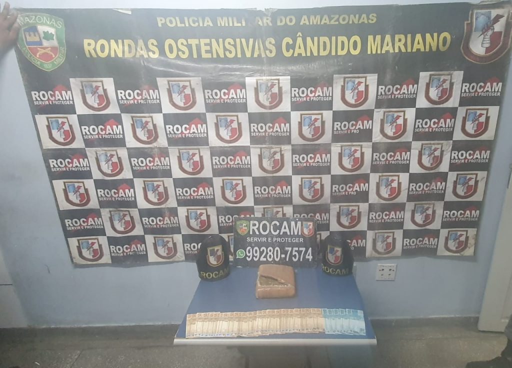 Um homem de 25 anos, suspeito de tráfico de drogas e corrupção ativa, foi detido na tarde desta segunda-feira (16/03) por policiais militares das Rondas Ostensivas Cândido Mariano (Rocam), no bairro Cidade de Deus, zona leste da capital. Com ele os policiais apreenderam 1 quilo supostamente de maconha tipo skunk, um aparelho celular da marca Samsung e a quantia de R$ 2 mil em espécie.