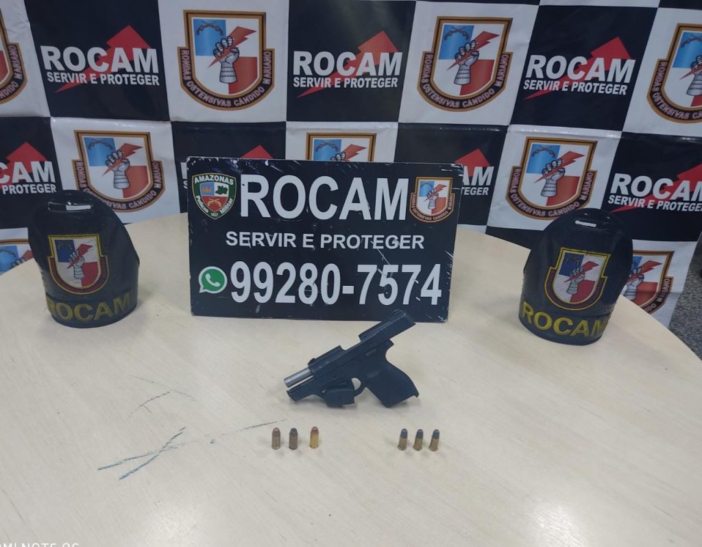 Policiais militares das Rondas Ostensivas Cândido Mariano (Rocam) prenderam em flagrante, na madrugada deste domingo (15/11), um homem de 37 anos, em posse de uma arma de fogo ilegal, no beco João Walter, antigo beco Oscar Borel, na rua João Walter, bairro Compensa, na zona oeste da cidade.
