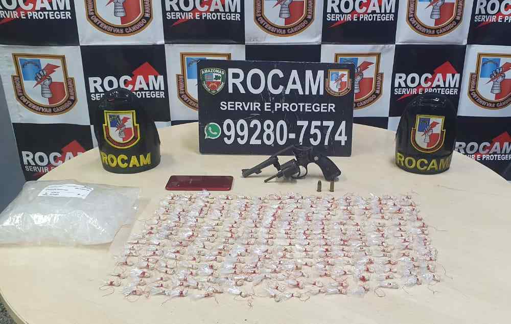 Em ação policial no bairro São Jorge, na zona oeste de Manaus, a equipe das Rondas Ostensivas Cândido Mariano (Rocam) deteve, na noite de quarta-feira (23/06), um homem de 29 anos, por porte ilegal de arma de fogo e tráfico de entorpecentes. Na ocorrência, foram apreendidas uma arma de fogo e 266 trouxinhas de substância com aspecto de oxi.