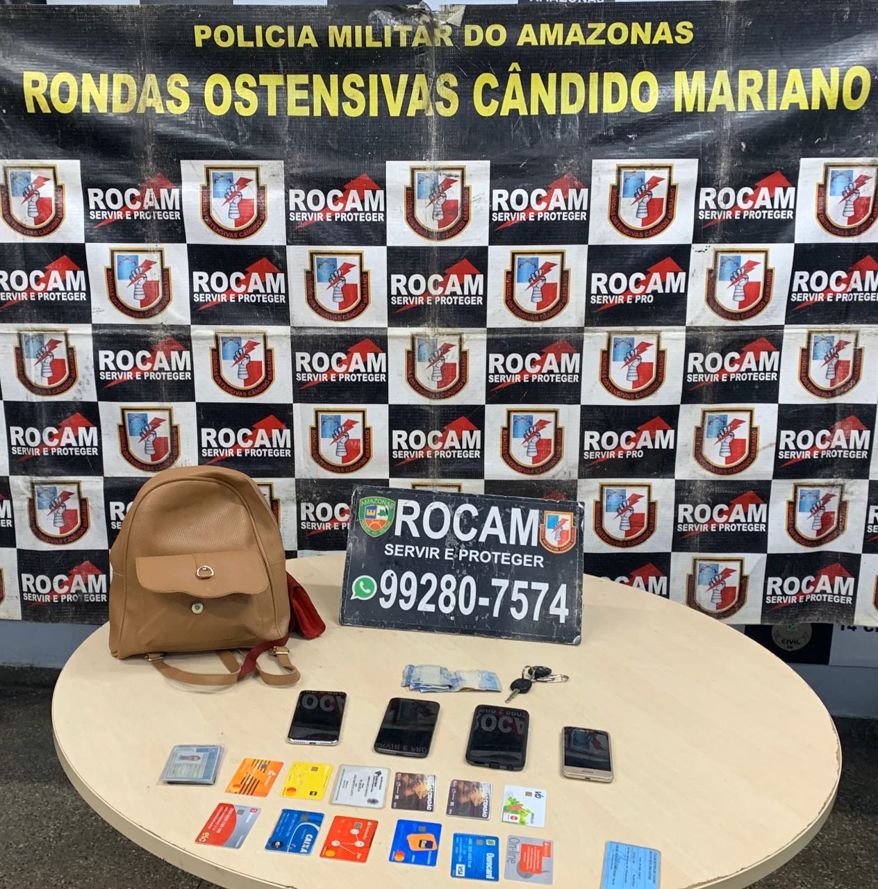 Policiais militares das Rondas Ostensivas Cândido Mariano (Rocam) detiveram, na noite desta segunda-feira (06/01), um homem de 22 anos e apreenderam um adolescente de 15 anos, suspeitos de roubo no bairro Armando Mendes, zona leste da capital. Com eles os policiais apreenderam quatro aparelhos celulares, diversos cartões bancários, a quantia de R$ 60 em espécie e um veículo modelo HB20, preto e placas PHI-1599.