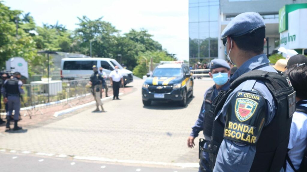 A Secretaria de Segurança Pública do Amazonas (SSP-AM) reforçou o policiamento durante a chegada da seleção brasileira masculina de futebol, em Manaus, na madrugada da última segunda-feira (11/09), para o jogo entre Brasil e Uruguai. O jogo acontece no próximo dia 14 de outubro, na Arena da Amazônia, válido pela 12ª rodada das eliminatórias da Copa do Mundo FIFA Catar 2022.