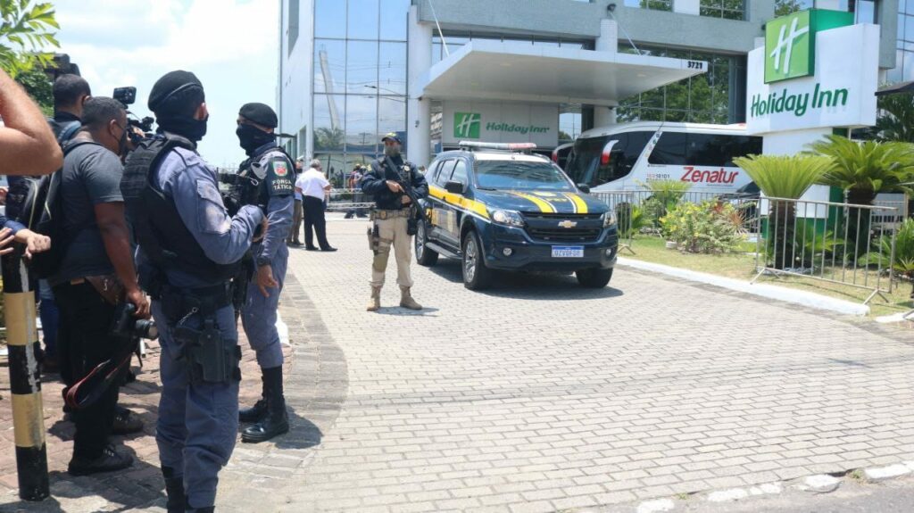 O desembarque da seleção contou com a escolta da PRF, acompanhada da Polícia Militar do Amazonas, IMMU e Guarda Municipal.