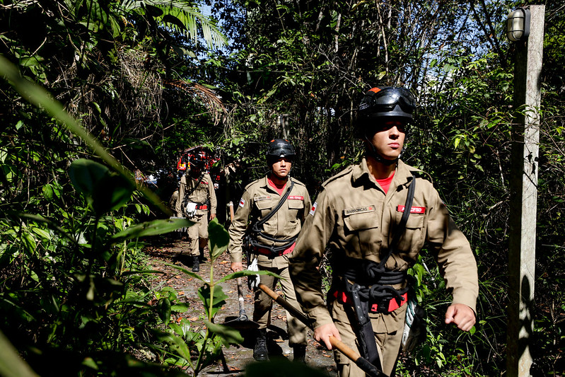 “Essas equipes são coordenadas e distribuídas no terreno com o material adequado, para que possam realizar o combate de forma efetiva. Elas são formadas por cinco alunos-soldados, coordenados por dois cadetes, que conduzem a equipe até o local da ocorrência”, explicou o militar Lairton Silva.