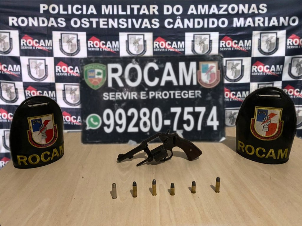 Policiais militares das Rondas Ostensivas Cândido Mariano (Rocam) detiveram, na noite da segunda-feira (10/02), um homem em posse de um revólver calibre 38, com seis munições, no Conjunto Residencial Viver Melhor II, na zona norte de Manaus.