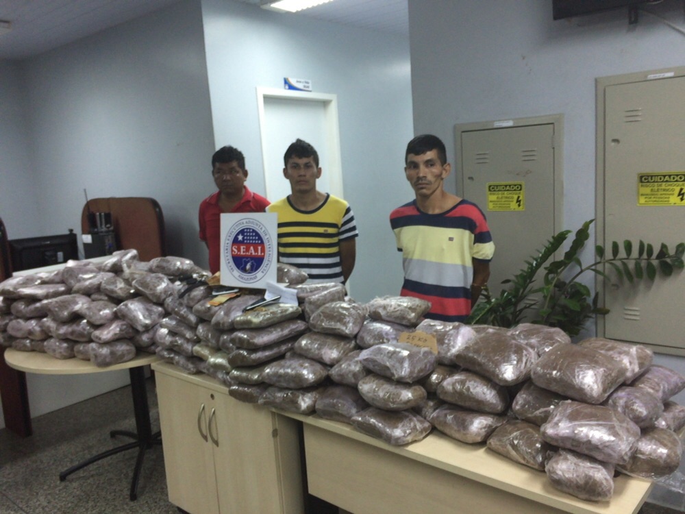 A Secretaria- Executiva- Adjunta de Inteligência da Secretaria de Segurança Pública do Amazonas (SSP-AM) prendeu na noite deste sábado (6), por volta das 21h, três traficantes com aproximadamente 200 quilos de droga (skank) na avenida Brasil, zona Oeste de Manaus, durante operação que contou com apoio da Polícia Civil, por meio do Grupo Fera e Grupamento de Operações Aéreas (GOA), que, do alto, auxiliou a prisão dos suspeitos pelo helicóptero.