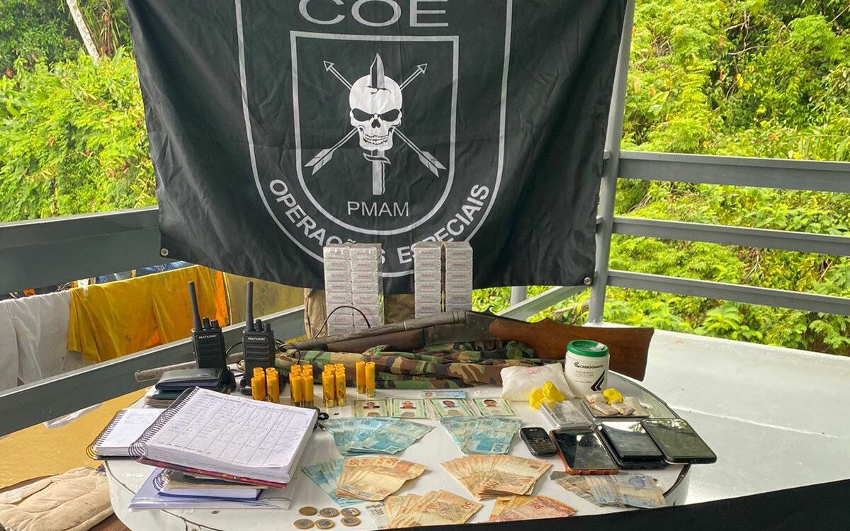 Os policiais da Companhia de Operações Especiais (COE), da Polícia Militar do Amazonas (PMAM), com o apoio da Marinha do Brasil, prenderam três pessoas e apreenderam mais de 400 gramas de ouro durante a operação Hórus, deflagrada no município de Japurá (a 744 quilômetros de Manaus), na segunda-feira (28/03). Durante a ação, os policiais ainda apreenderam uma arma de fogo calibre 20, munições e balanças de precisão, além de dinheiro em espécie.