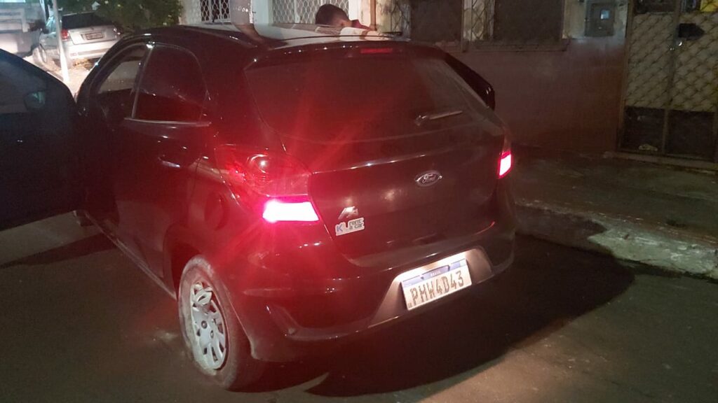 A equipe da viatura 6350 realizava patrulhamento ostensivo pela área central da cidade, quando foi acionada pelo Centro de Comunicações Operacionais da Polícia Militar (Cecopom), informando sobre um grupo de cinco pessoas que estariam realizando arrastões pelo Centro, a bordo de um carro modelo Ford Ka SE 1.0 HA C, de cor preta e placas PHW-4D43.
