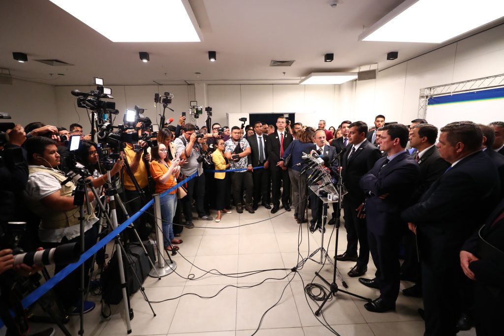 Em visita ao CIISPR-N, que funciona na estrutura do Censipam, Wilson Lima e Sérgio Moro, acompanhados dos outros governadores e representantes dos estados da região Norte, conheceram as salas de monitoramento, de extração de celular, e toda a estrutura, além de conversar com as equipes que trabalham lá.