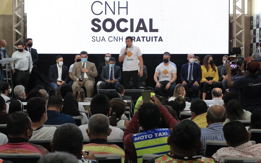 O governador Wilson Lima lançou, nesta quarta-feira (17/11), o programa Detran Cidadão, que deve alcançar mais de 300 mil pessoas de baixa renda, até 2023, com benefícios como a emissão gratuita da Carteira Nacional de Habilitação (CNH) e isenção de taxas para cursos do órgão voltados a mototaxitas e motofretistas. Por meio do programa, também serão entregues 40 mil capacetes e coletes e oferecidos cursos de legislação do trânsito em escolas.